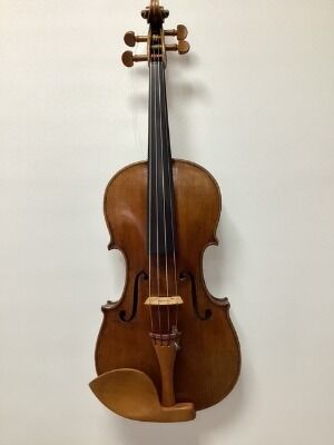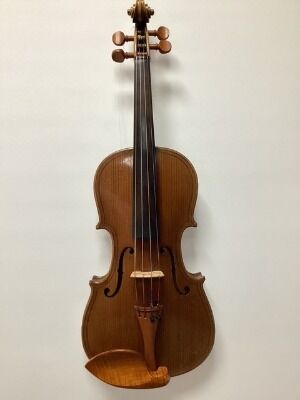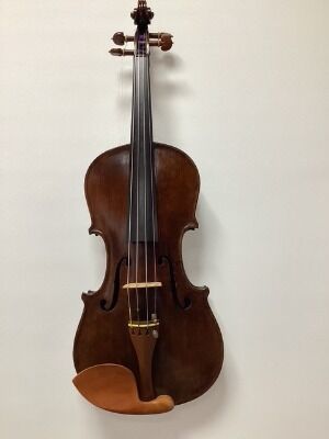 360mm over the back, Built from medium figure Maple back sides and neck, this Saxon violin is a classic example of the Stradivarian "G" form, offering flattish arching to give a powerful tone. Fully restored and strung with D'darrio Pro-Arte strings